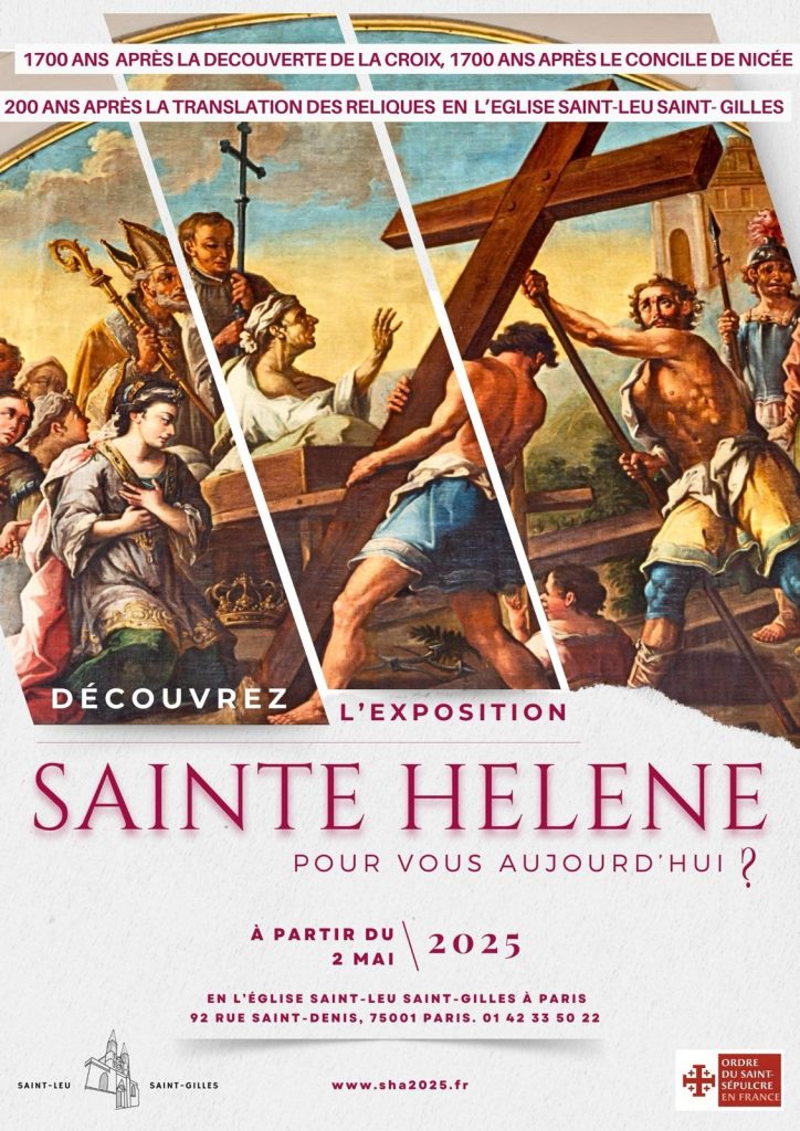 La paroisse Saint Leu-Saint Gilles célèbre, en 2025, ce triple anniversaire. Afin de mieux découvrir cette sainte déterminée, qui nous conduit au mystère de la Croix. La paroisse propose, dans ses murs, des célébrations, une exposition, des conférences et des concerts. Ces événements sont construits en collaboration avec nos frères orthodoxes et l’Ordre Équestre du Saint Sépulcre de Jérusalem dont c’est l’église capitulaire.